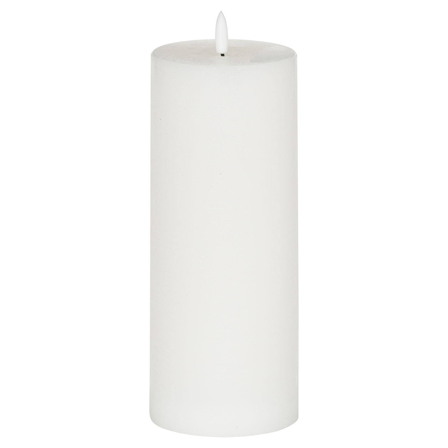 This real wax battery operated pillar candle is perfect for decorating your home or adding the finishing flourish to your wedding venue. They are the simplest way to create a warm atmosphere. The amber LED flame flickers gently to imitate the effect of a real flame but without the messy wax, risk of fire.